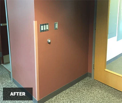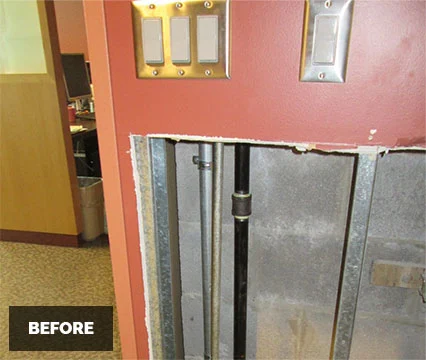 The majority of the work was completed during the third shift to alleviate tenants’ concerns of construction impacting their operations. We explored the utility path, opened the walls, ran conduit, and repaired the walls on all five floors, all during non-operational hours for the tenants.